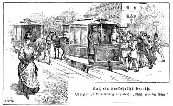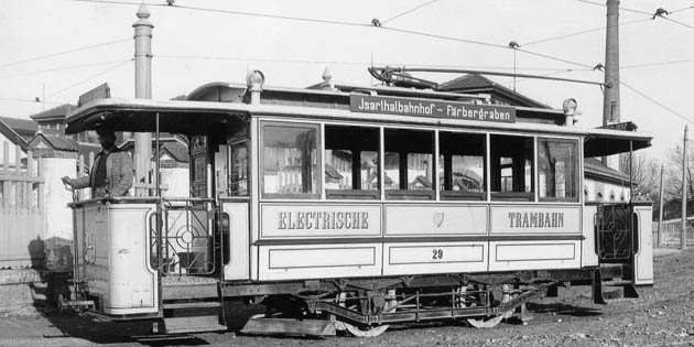 Im Jahre 1895 beginnt man in München mit der Umstellung der Trambahn auf den elektrischen Betrieb. Die Pferde haben ausgedient.